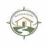 A logo featuring a house on a curved pathway with trees and a sun, with the text 'Wander Home' around the top in a circular pattern.